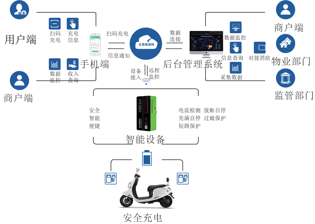 共享充电桩系统为方便用户充电,简化充电流程,特生产扫码式充电桩,用户微信扫描插座二维码选择充电方式,即可开始充电,微信用户端支持充值消费,可以自己设置优惠金额。以分布式物联网为核心技术,下车库、架空层、户外,政企单位/商场/医院等停车场,网络覆盖区,非网络覆盖区等多种应用场景。