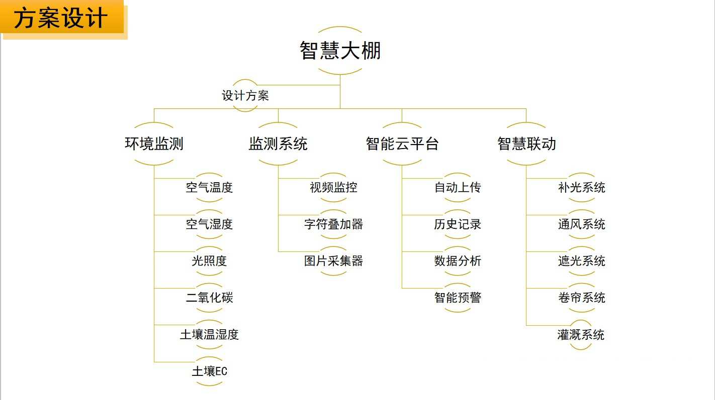 智慧大棚通过智能硬件、物联网、大数据等技术对传统的农业大棚进行升级改造,随时掌控并调节大棚内的环境指数,提供给大棚内植物精准培育环境,构建全程智能化的高效监测控制管理体系,实现科学指导生态轮作,保证作物的高产、优质、生态、安全;有效提高生长速度和生长质量,增加作物产值。建立线上运营和溯源系统,提高农户经济收益和品牌效益。