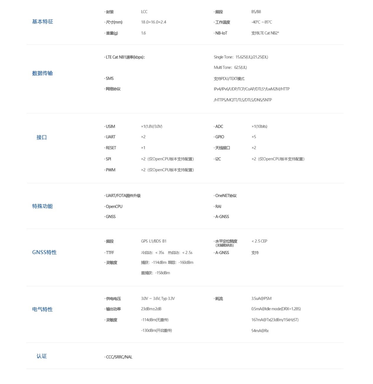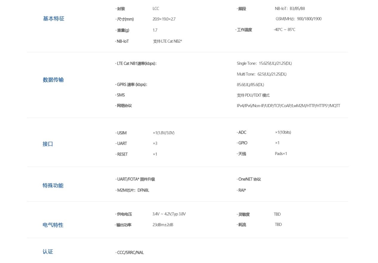 N10SG 是 一 款 高 性 能、 低 功 耗 的 NB/GNSS 无 线 通 信 模 组, 采 用 LCC 封 装, 尺 寸 仅 为 18.0mmx16.0mmx2.4mm,满足《中国移动蜂窝物联网通用模组技术规范》。