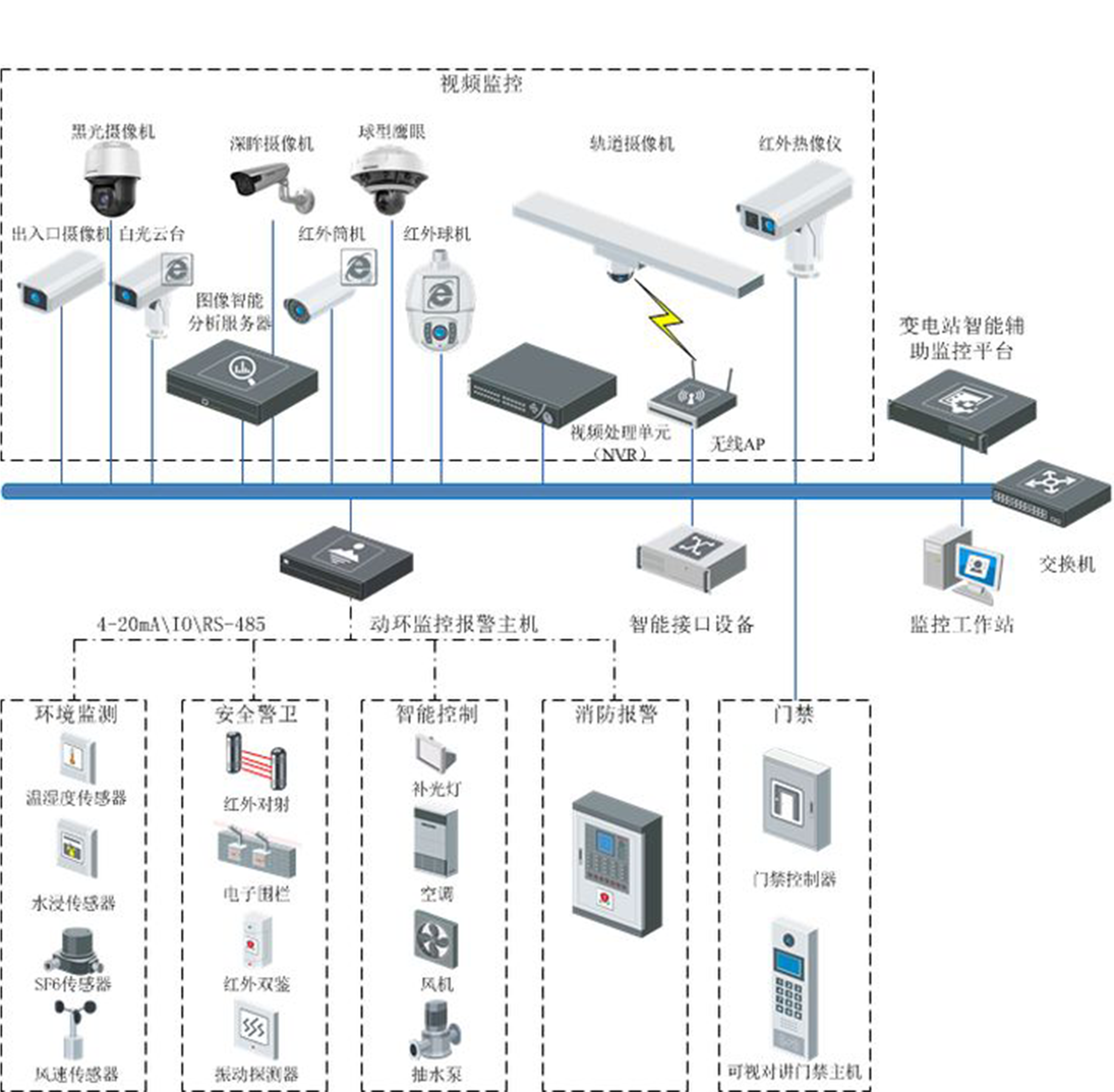 通过变电站制高点部署的红外热像仪,对重要设备进行轮巡,实时监测设备温度,一旦发现温度异常,及时产生报警。