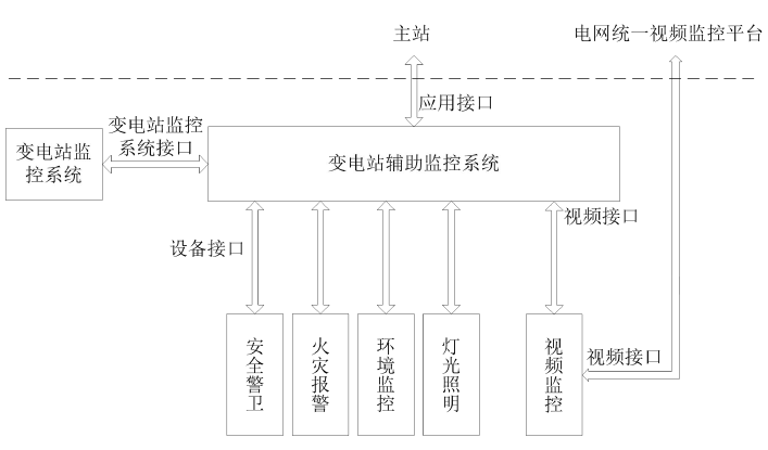变电站辅控系统包括站端辅助管理器、与站端辅助管理器连接的环境检测设备,安防检测设备,视频检测设备,辅助检测设备,数据采集模块,数据传输装置,报警系统,站端设备,接收采集信息分析故障区域并对故障进行隔离的故障智能分析模块、以及根据故障智能分析模块发送的故障信息对各设备进行调节的智能控制调节装置。解决了现有的变电站监控系统存在的可靠性不高的问题,同时通过增设的故障智能分析模块对各个变电站的各种信息进行统一故障分析处理,并通过智能调节装置调节系统的温湿度装置,解决因环境因素导致的故障问题。